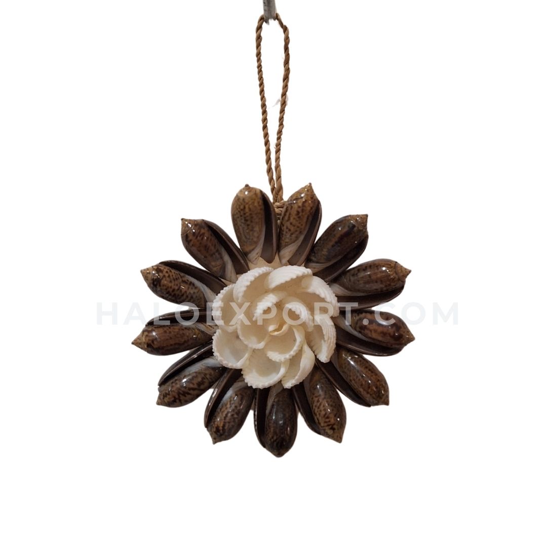 Flower Design Wall Hanging With Dark Olive Shells Decoration